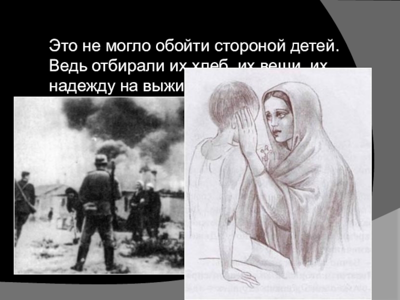 Слайд 15Это не могло обойти стороной детей. Ведь отбирали их хлеб, их
