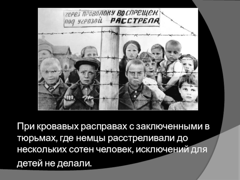 При кровавых расправах с заключенными в тюрьмах, где немцы расстреливали до нескольких сотен человек, исключений для детей