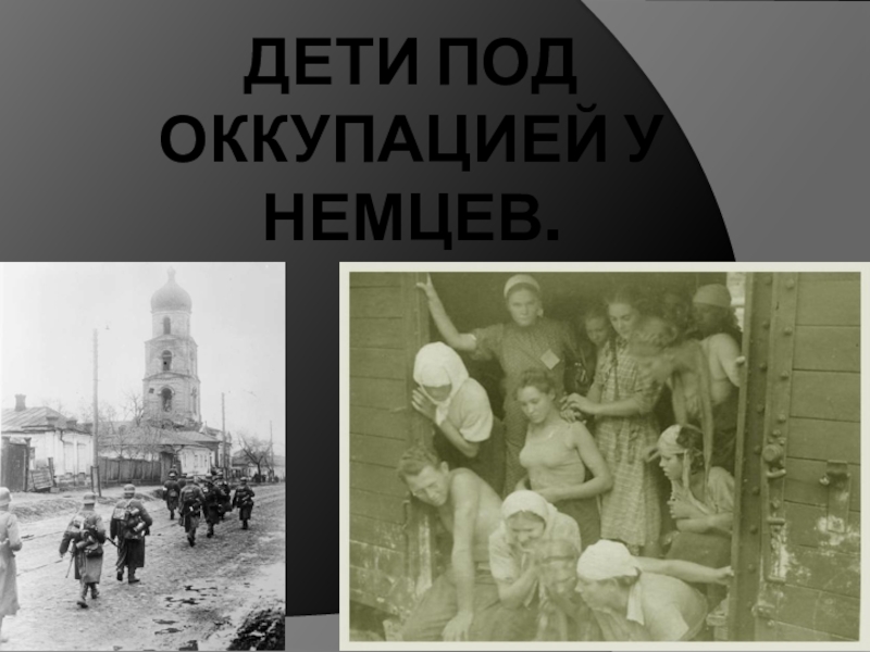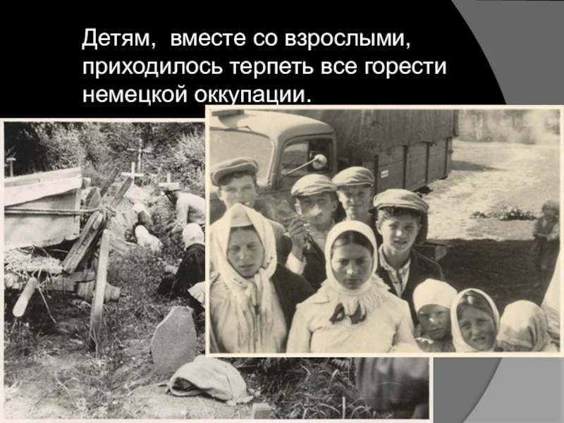 Слайд 13Детям,  вместе со взрослыми, приходилось терпеть все горести немецкой оккупации.
