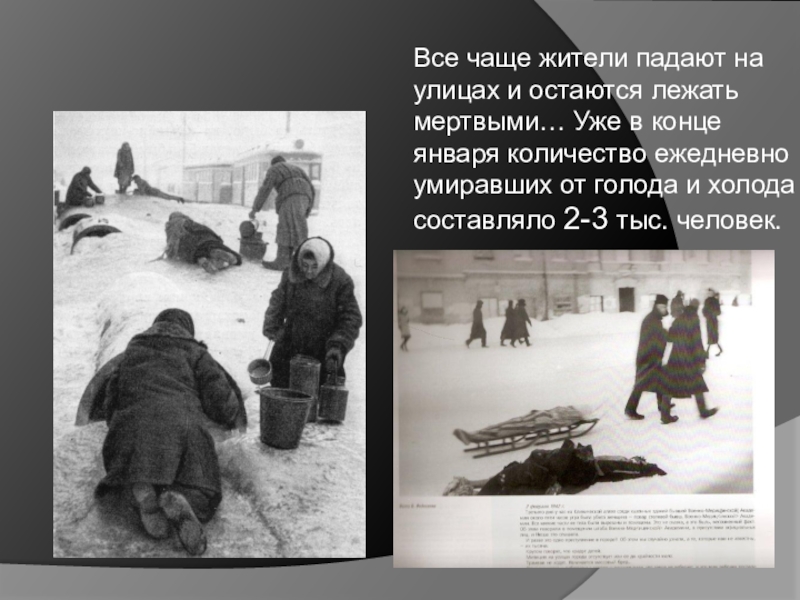 Слайд 9Все чаще жители падают на улицах и остаются лежать мертвыми… Уже