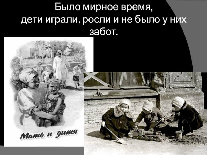 Слайд 3Было мирное время, дети играли, росли и не было у них забот.