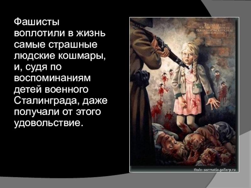 Фашисты воплотили в жизнь самые страшные людские кошмары, и, судя по воспоминаниям детей военного Сталинграда, даже получали