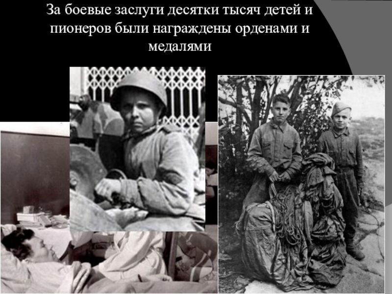 Слайд 26За боевые заслуги десятки тысяч детей и пионеров были награждены орденами