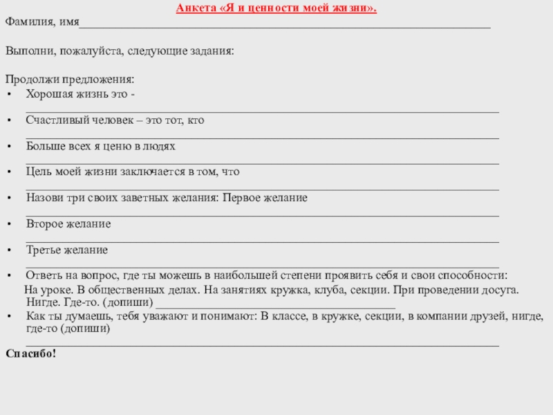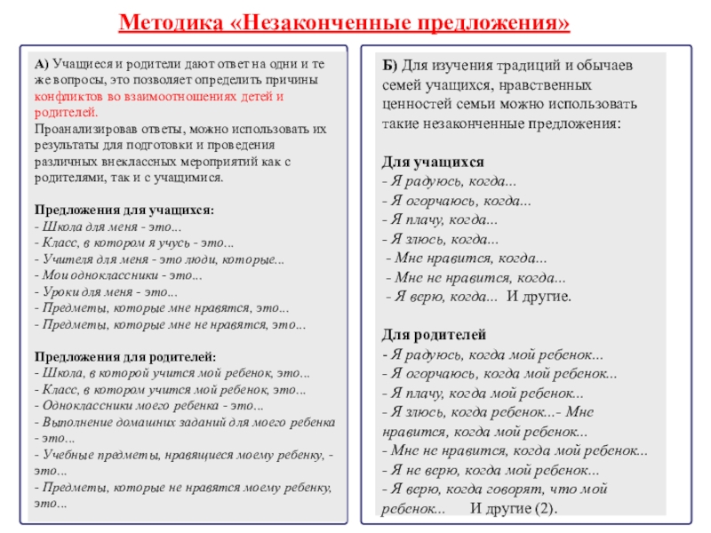 Методика «Незаконченные предложения»