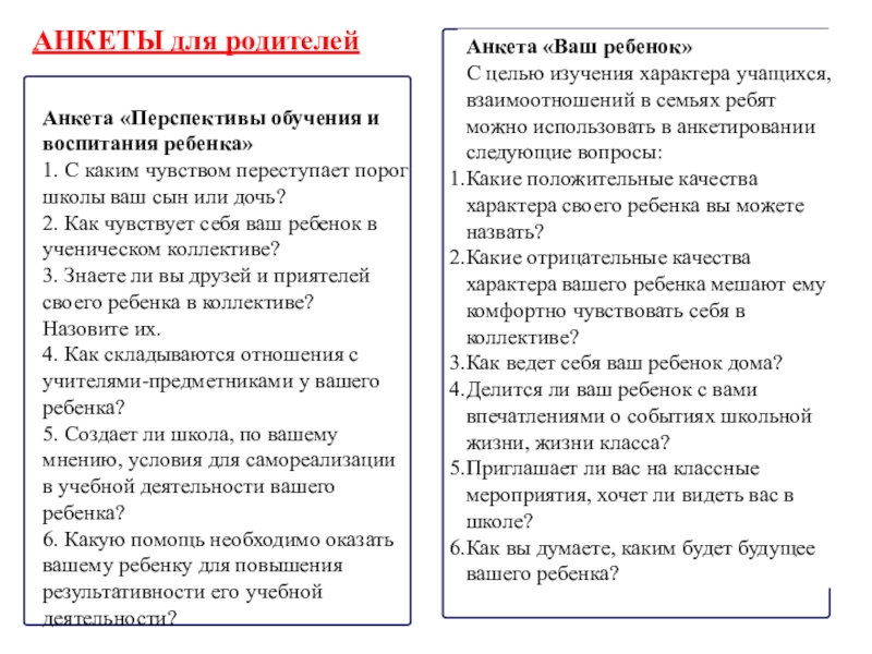АНКЕТЫ для родителей