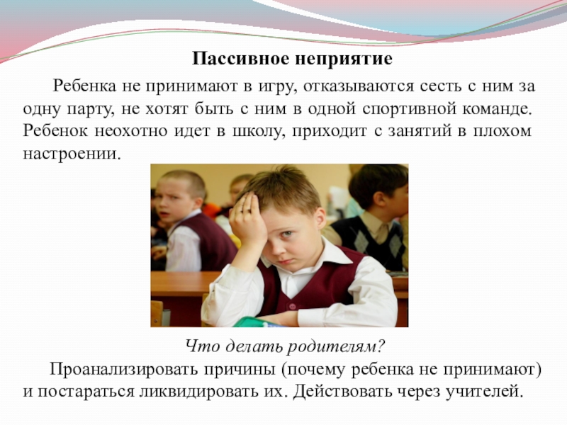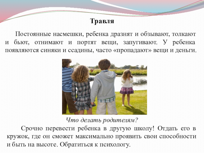 Перевести ребенка в другой класс (или в другую школу). Поговорить с учителями. Обратиться к психологу.