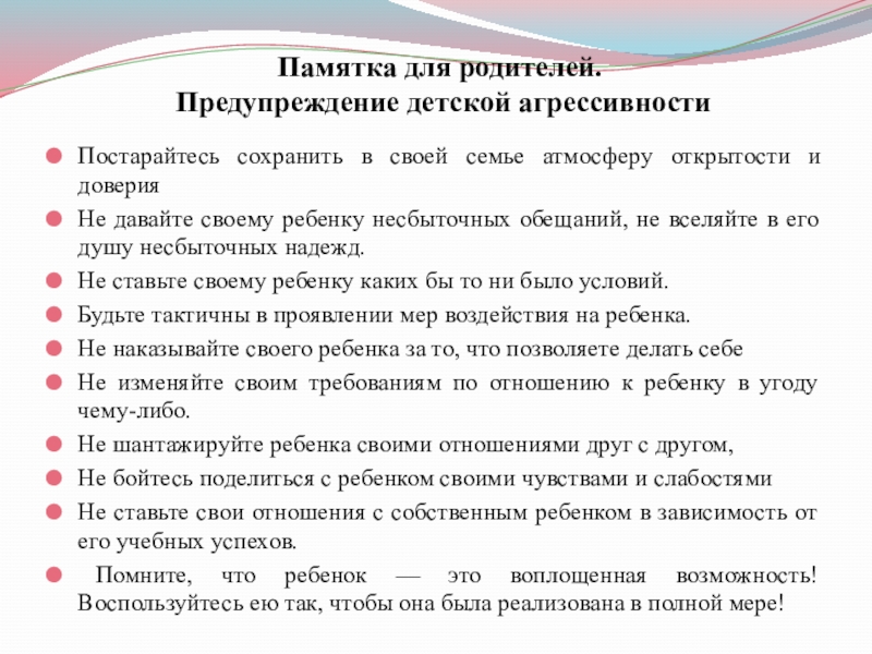 Помните, что ребенок — это воплощенная возможность! Bоспользуйтесь ею так, чтобы она была реализована в полной мере!