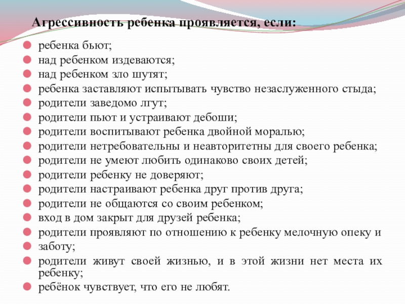 Будьте тактичны в проявлении мер воздействия на ребенка.