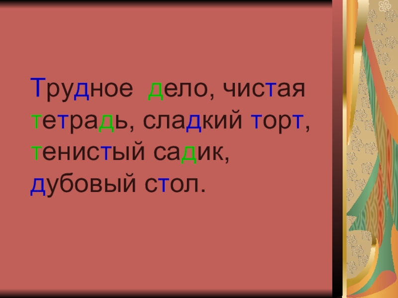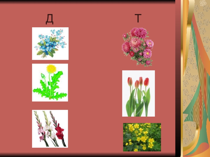 Слайд 1 Буквы д – т и их