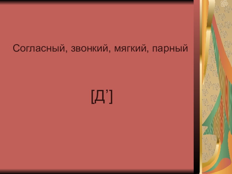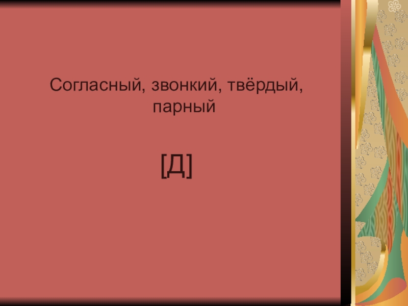 Согласный, звонкий, твёрдый, парный [Д]