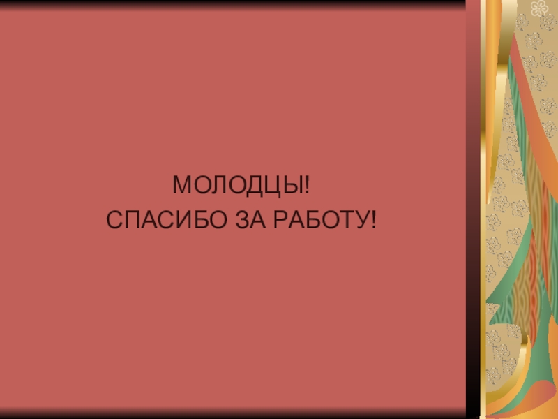 МОЛОДЦЫ!СПАСИБО ЗА РАБОТУ!