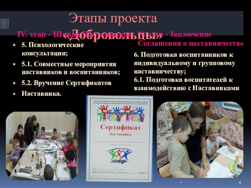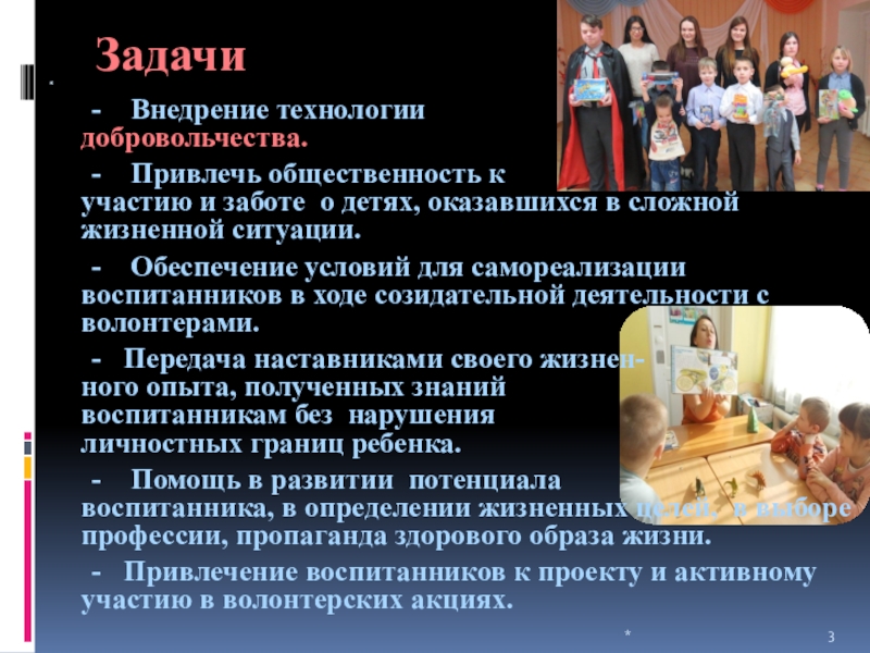 4 . Воспитанники станут участниками различных культурно-массовых мероприятий, развивающих занятий, мастер-классов по интересам, а главное обретут старших друзей в лице волонтеров.