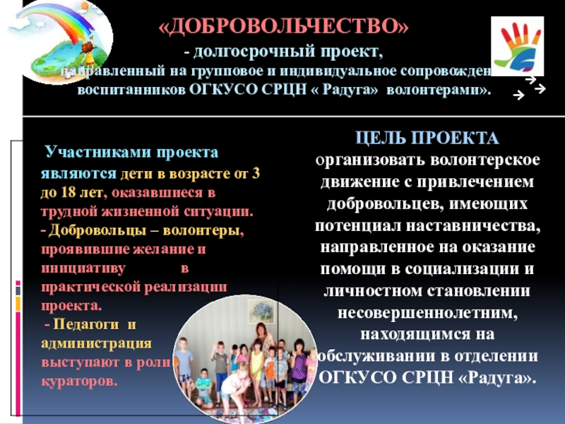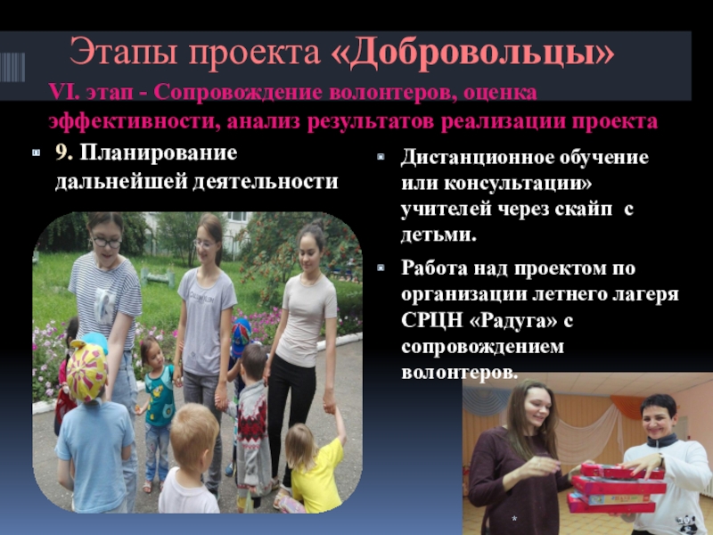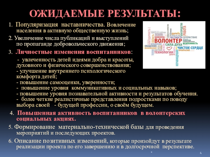 5. Обеспечение условий для самореализации воспитанников в ходе созидательной деятельности с волонтерами будет способствовать улучшению внутреннего психологического комфорта, развитию потенциала детей, определению жизненных целей.
