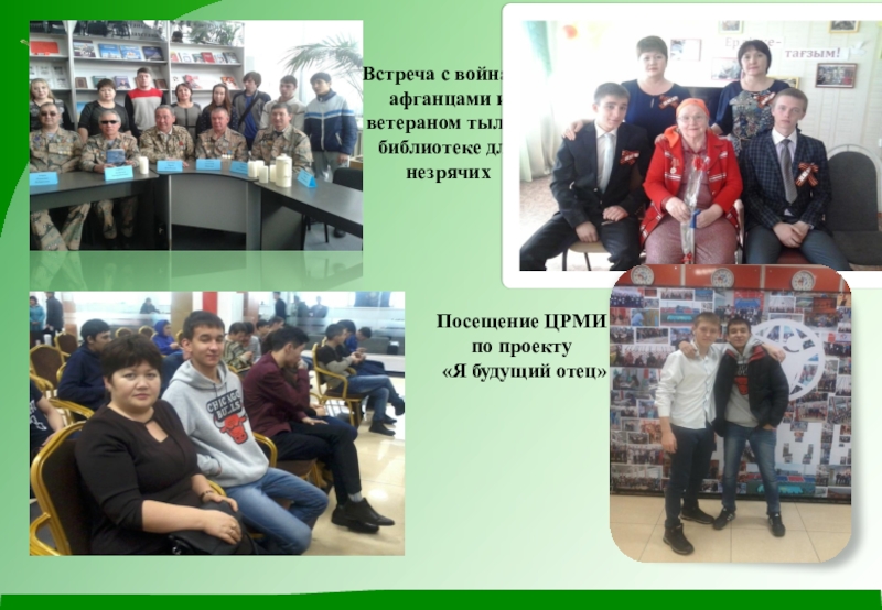 Слайд 16Встреча с войнами афганцами и ветераном тыла в библиотеке для незрячих
