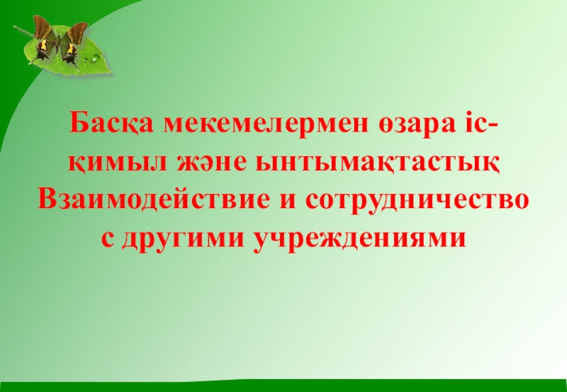 Слайд 14Басқа мекемелермен өзара іс-қимыл және ынтымақтастық