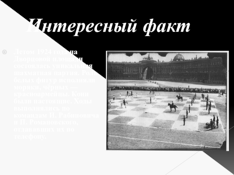 Летом 1924 года на Дворцовой площади состоялась уникальная шахматная партия.