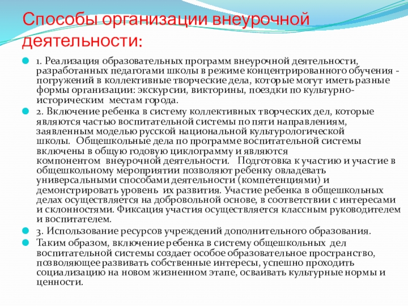 Внеучебная деятельность школьников – понятие, объединяющее все виды деятельности школьников (кроме учебной), в которых возможно и целесообразно решение задач их воспитания и социализации – это неотъемлемая часть образовательного процесса в школе.