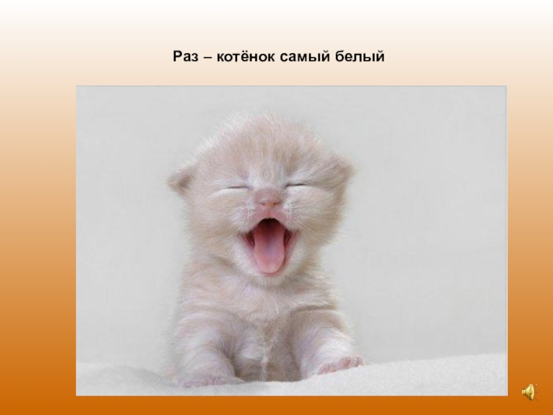 Слайд 4Раз – котёнок самый белый
