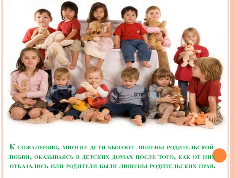 Слайд 3К сожалению, многие дети бывают лишены родительской любви, оказываясь в детских