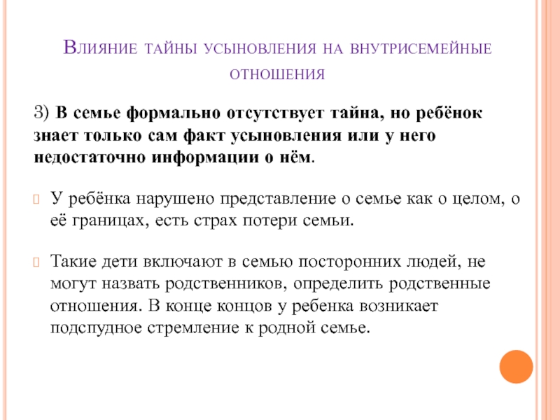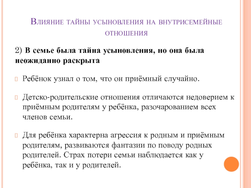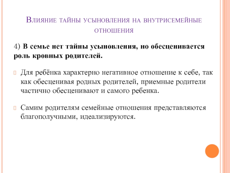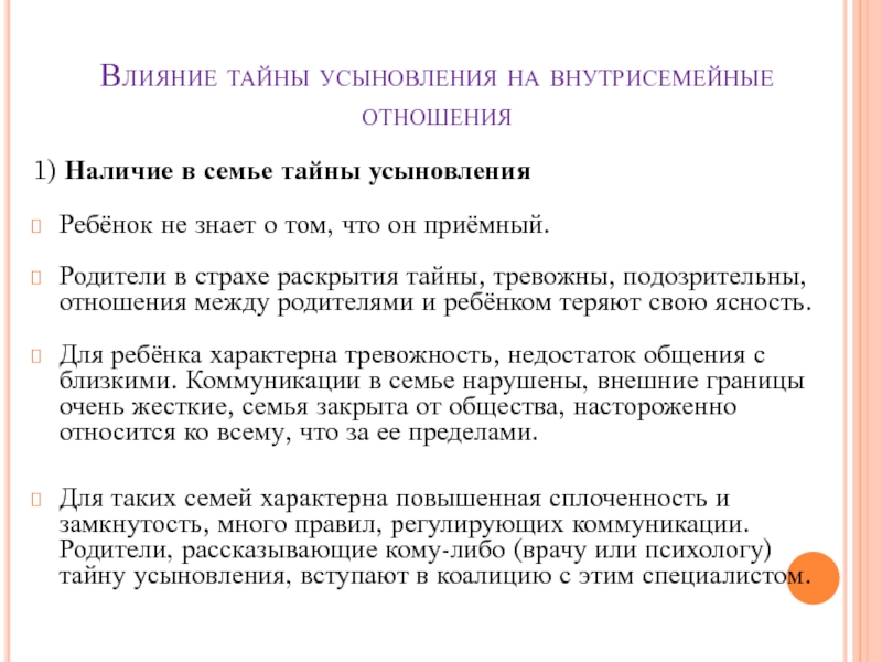 Слайд 14Влияние тайны усыновления на внутрисемейные отношения
