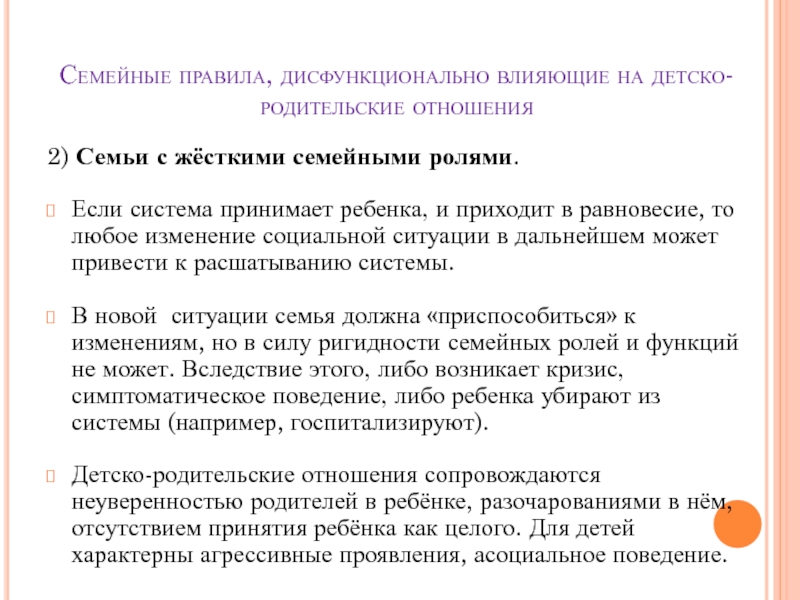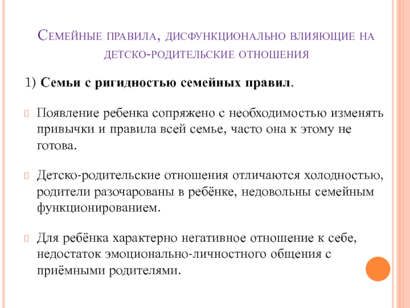 Слайд 20Семейные правила, дисфункционально влияющие на детско-родительские отношения