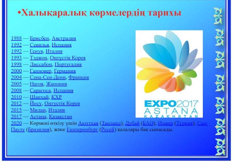 Слайд 5ЭКСПО деген қандай көрме?