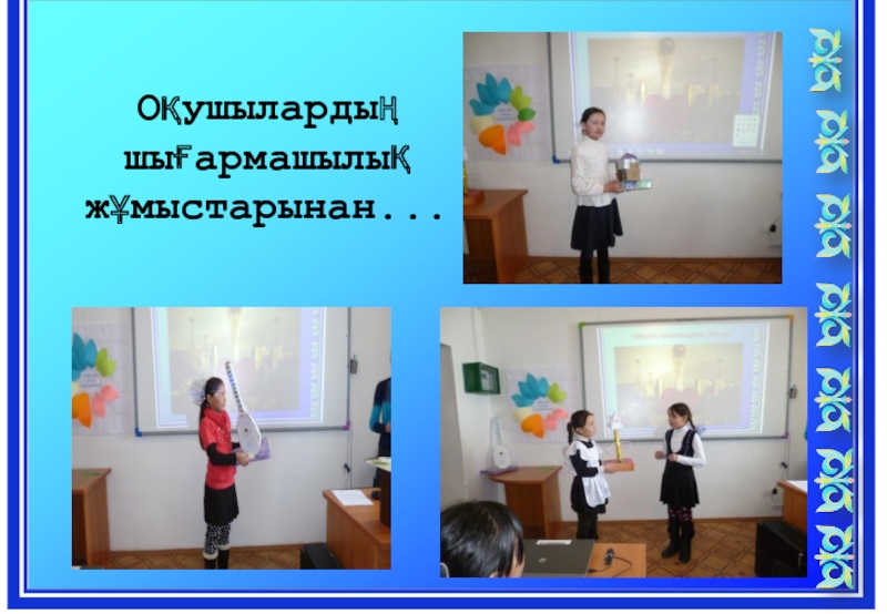 Слайд 26Оқушылардың шығармашылық жұмыстарынан...