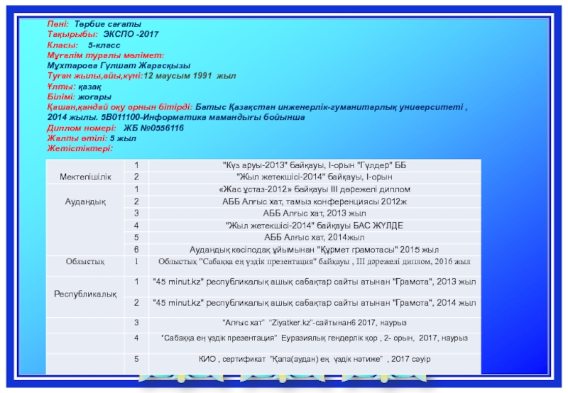 Мұғалім туралы мәлімет: