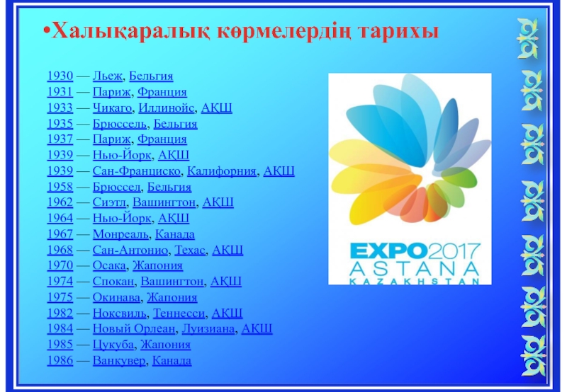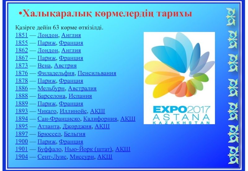 Слайд 6Халықаралық көрмелердің тарихы