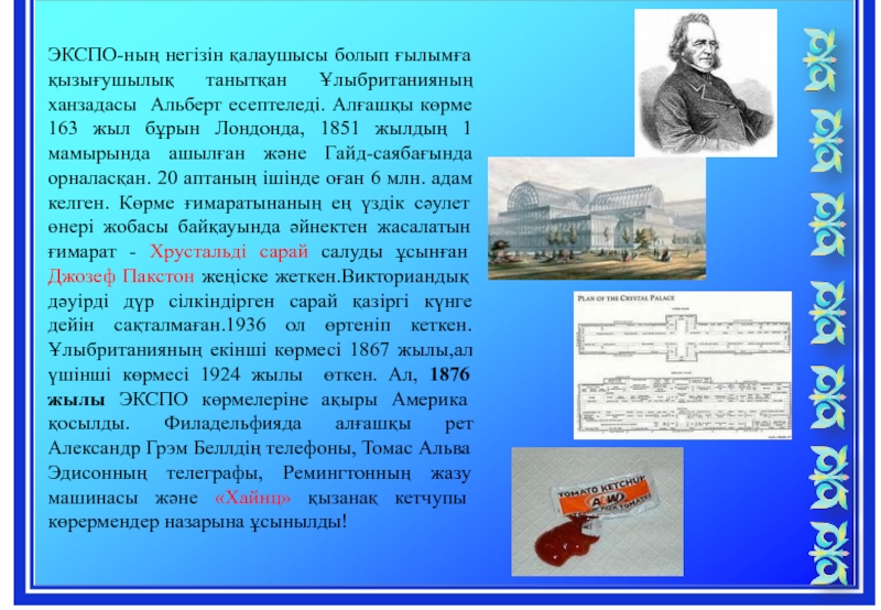 Слайд 10ЭКСПО-ның негізін қалаушысы болып ғылымға қызығушылық танытқан Ұлыбританияның ханзадасы Альберт есептеледі.