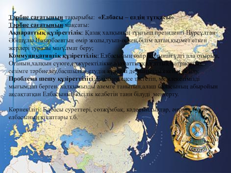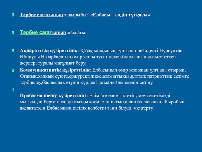 Слайд 4Тәрбие сағатының тақырыбы: «Елбасы – елдің тұтқасы»