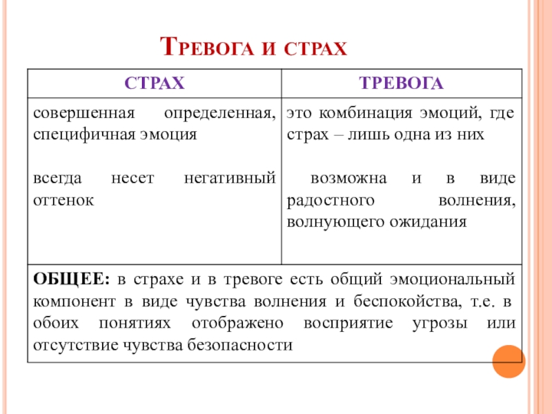 Презентация, доклад на тему Эмоции тревоги и страхи: сравнительная характеристика