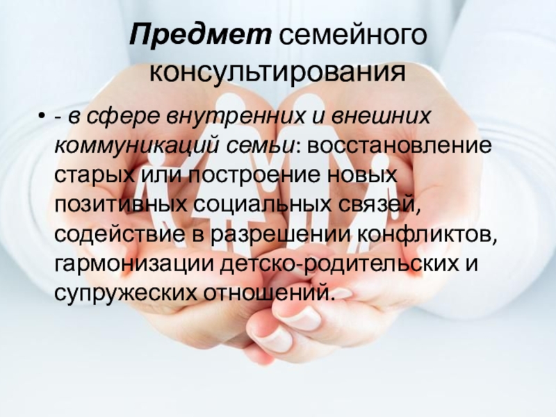 Предмет семейного консультирования - в сфере внутренних и внешних коммуникаций семьи: восстановление старых или построение новых позитивных