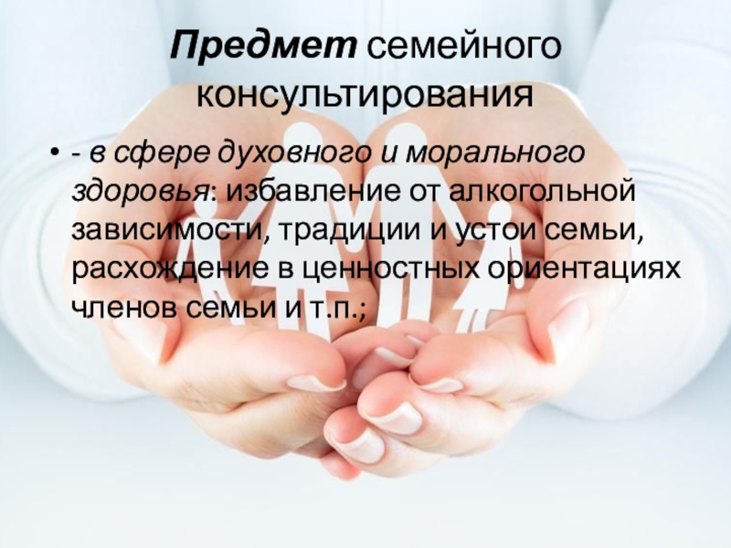 Предмет семейного консультирования - в сфере духовного и морального здоровья: избавление от алкогольной зависимости, традиции и устои