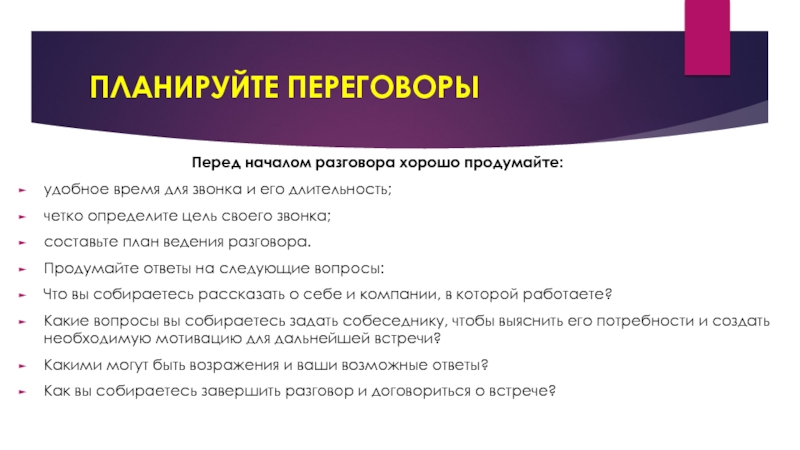 Слайд 5 ПЛАНИРУЙТЕ ПЕРЕГОВОРЫ