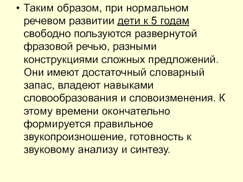 Слайд 7Таким образом, при нормальном речевом развитии дети к 5 годам свободно