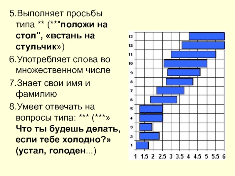 Слайд 15 5.Выполняет просьбы типа ** (**"положи на стол", «встань на стульчик»)