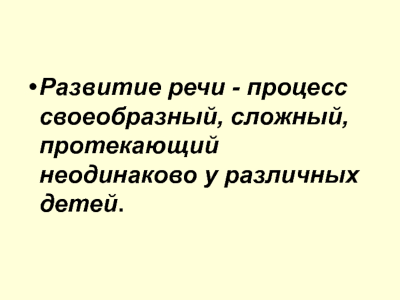 Развитие речи - процесс своеобразный, сложный, протекающий неодинаково у различных детей.