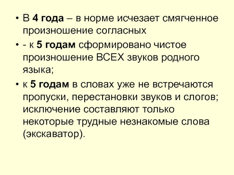 Слайд 13В 4 года – в норме исчезает смягченное произношение согласных