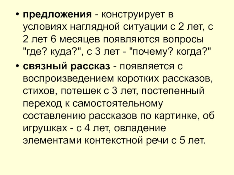 Слайд 6предложения - конструирует в условиях наглядной ситуации с 2 лет, с