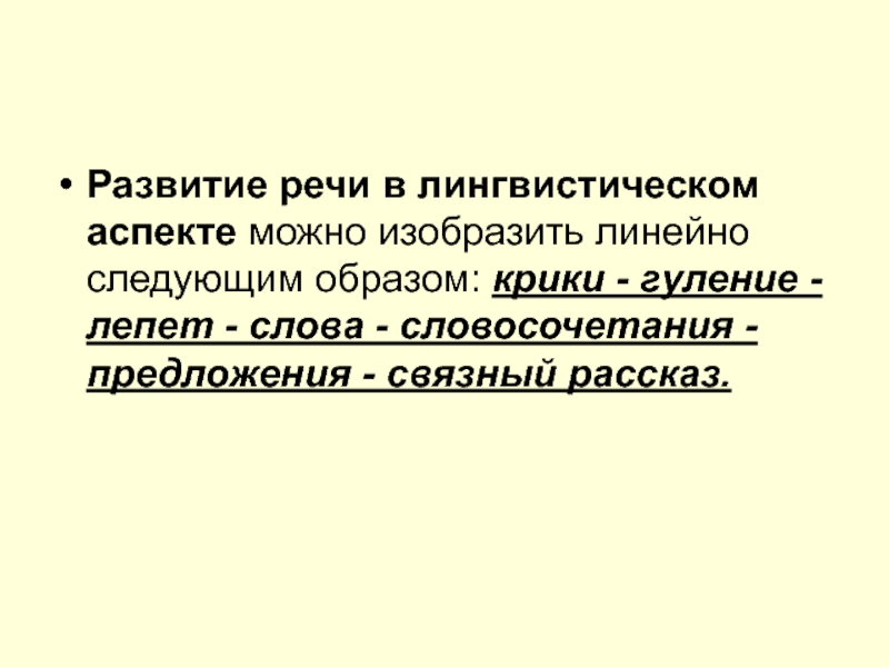 Развитие речи в лингвистическом аспекте можно изобразить линейно следующим образом: крики