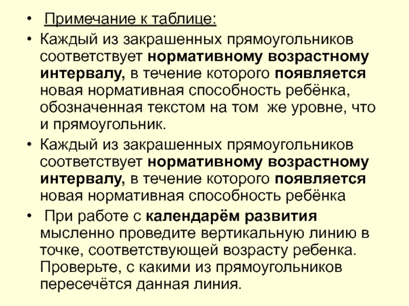 Каждый из закрашенных прямоугольников соответствует нормативному возрастному интервалу, в течение которого появляется новая нормативная способность ребёнка