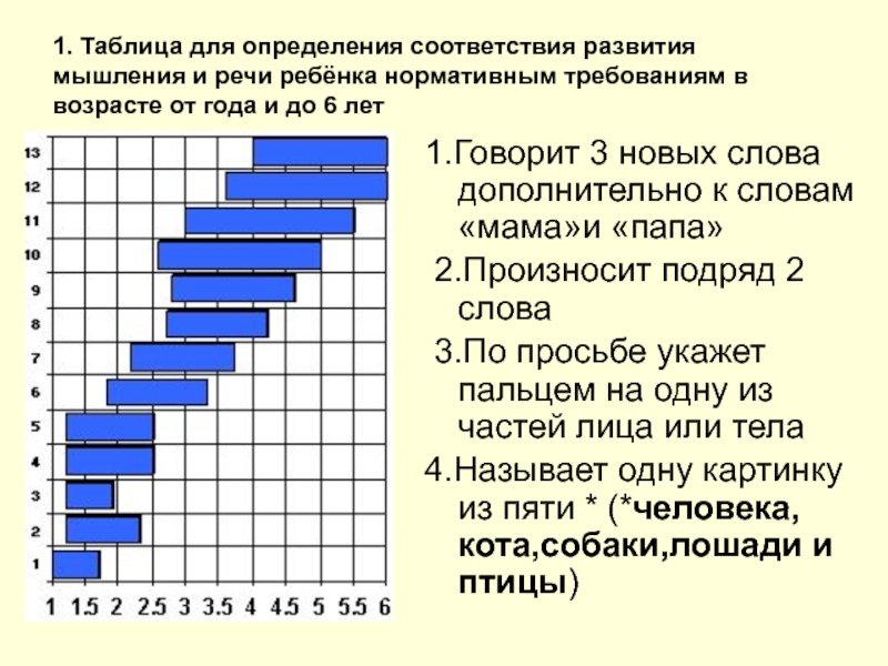 Слайд 141. Таблица для определения соответствия развития мышления и речи ребёнка нормативным