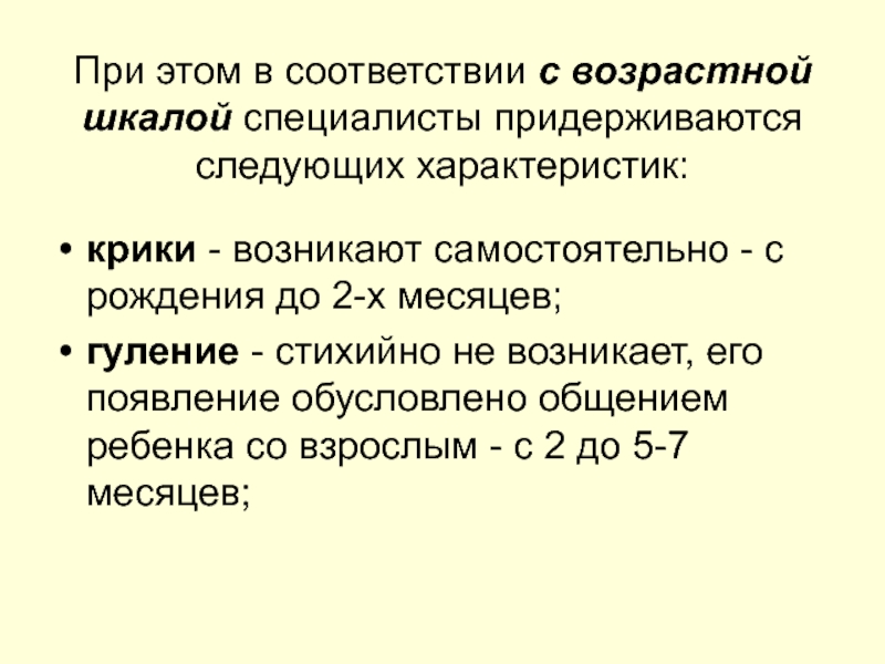 гуление - стихийно не возникает, его появление обусловлено общением ребенка со взрослым - с 2 до 5-7 месяцев;