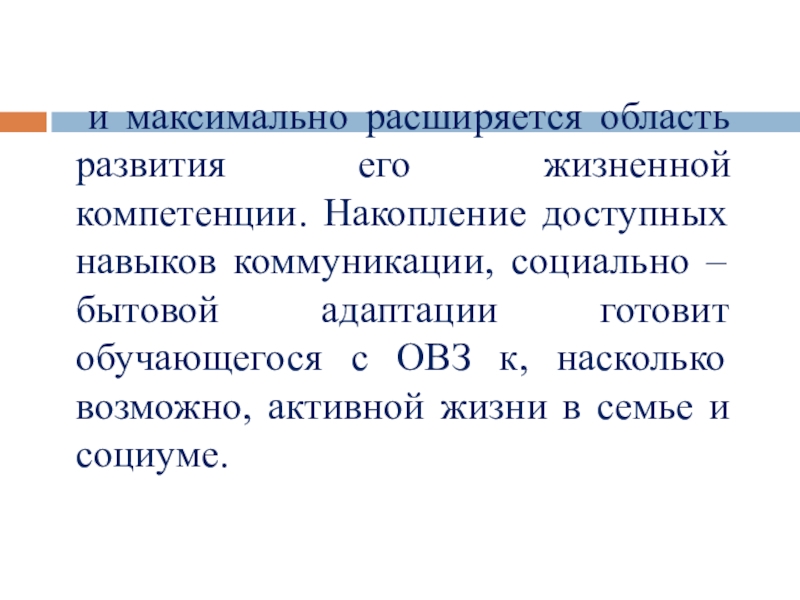 доступных навыков коммуникации, социально – бытовой адаптации готовит обучающегося с ОВЗ к, насколько возможно, активной жизни в семье и социуме.