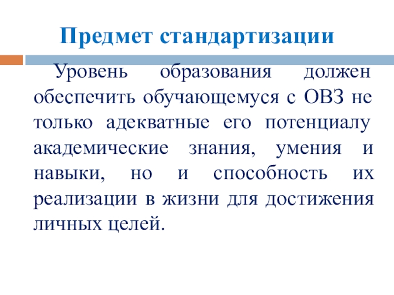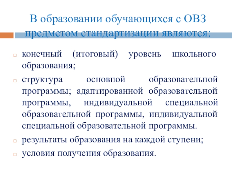 Слайд 8В образовании обучающихся с ОВЗ предметом стандартизации являются: