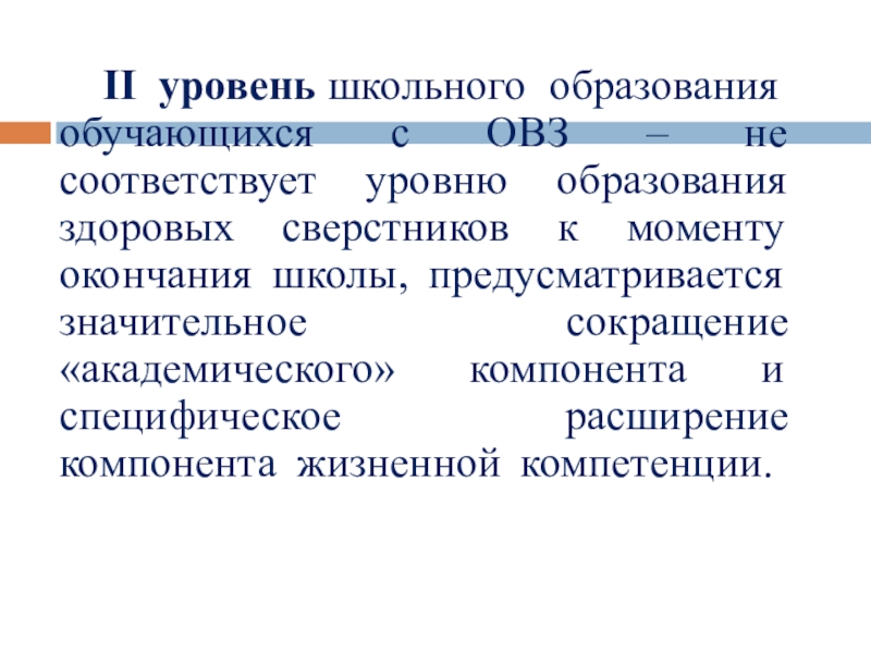 Слайд 5 II уровень школьного образования обучающихся с ОВЗ – не соответствует
