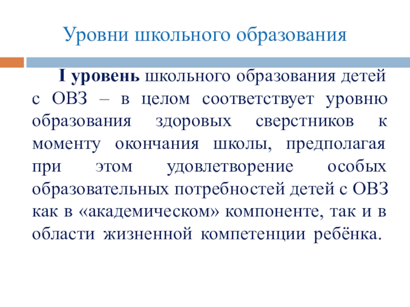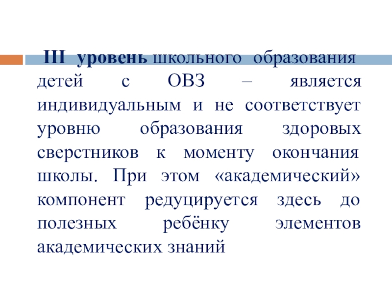 Слайд 6 III уровень школьного образования детей с ОВЗ – является индивидуальным