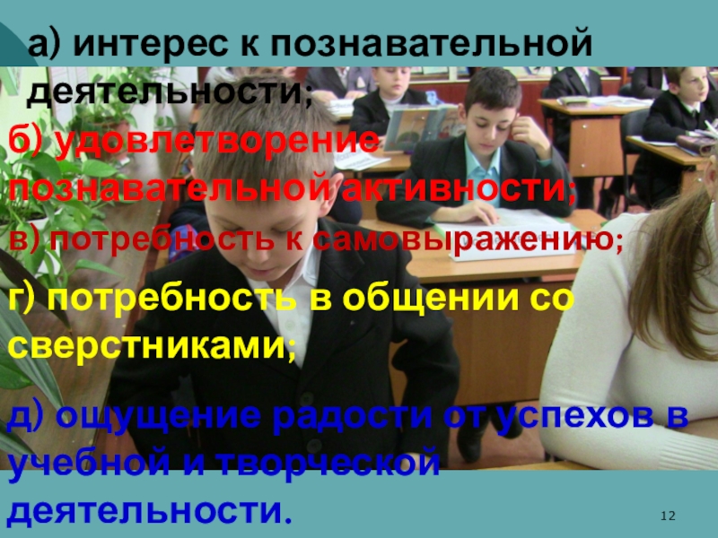 д) ощущение радости от успехов в учебной и творческой деятельности.