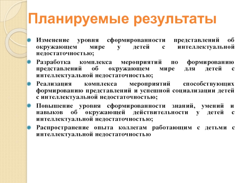 Повышение уровня сформированности знаний, умений и навыков об окружающей действительности у детей с интеллектуальной недостаточностью;